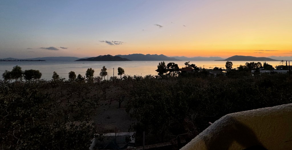 Enjoy the amazing sunsets behind the mountains of the Peloponnese peninsula.